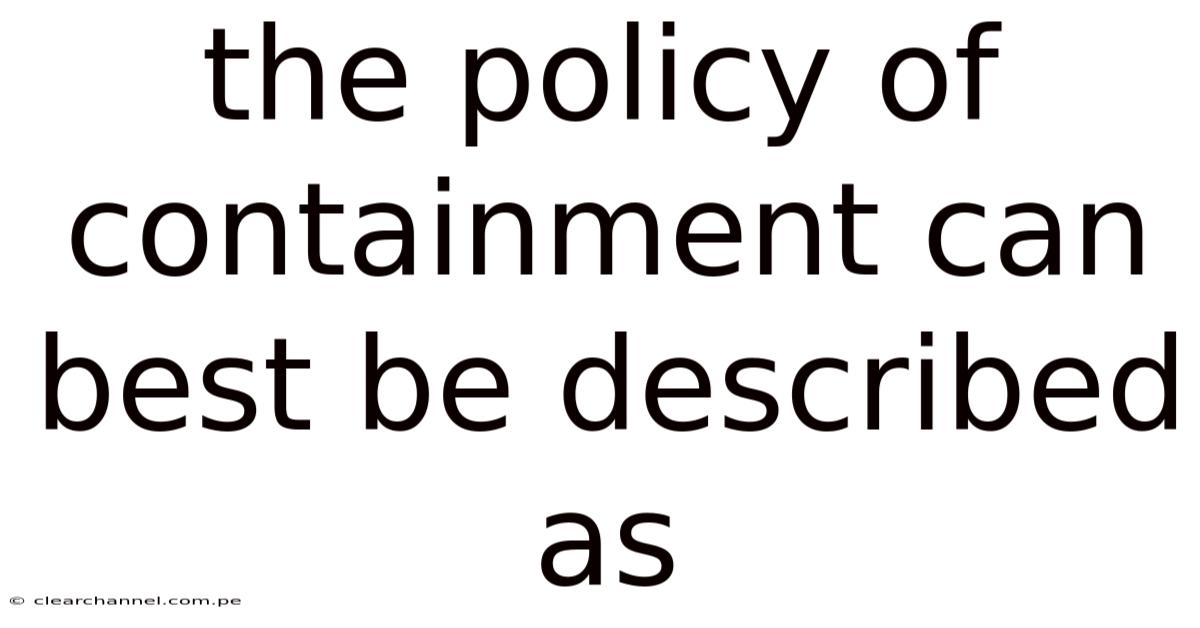 The Policy of Containment Can Best Be Described as a Strategic Framework Aimed at Limiting the Spread of Ideology Through Diplomacy, Military Posturing, and Economic Incentives