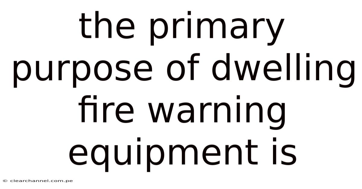 The Primary Purpose Of Dwelling Fire Warning Equipment Is