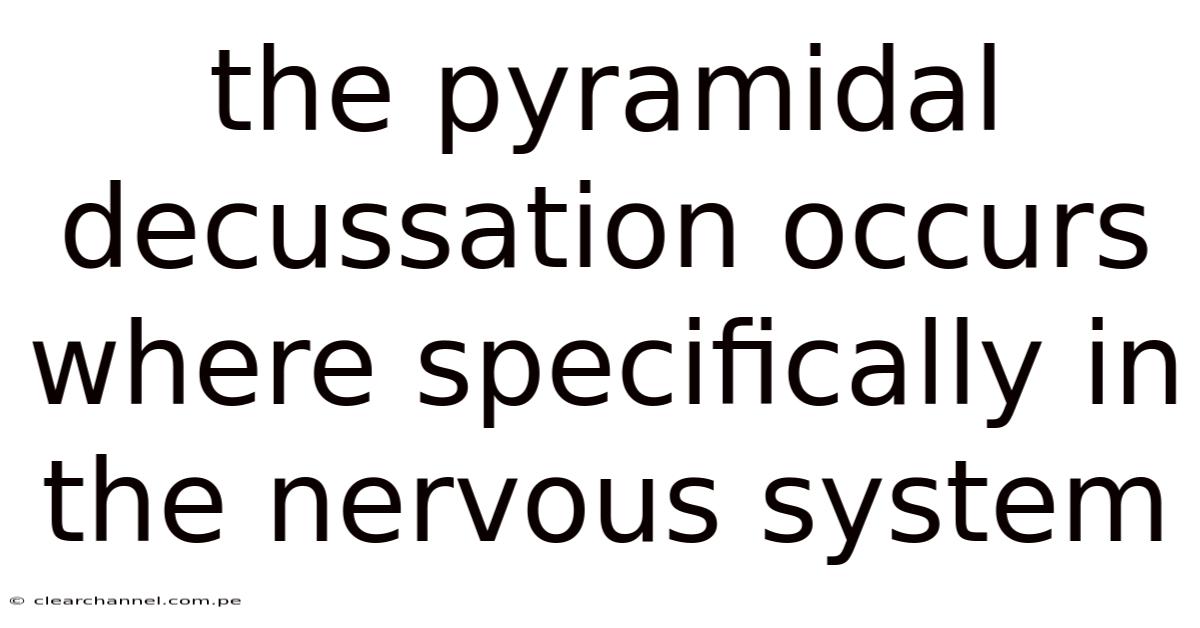 The pyramidal decussation is a key crossing point of motor fibers that determines how voluntary movements are coordinated between the brain and the opposite side of the body. Located in the lower medulla oblongata, this anatomical landmark marks the transition from the corticospinal tract’s pyramids to the lateral and anterior corticospinal tracts that descend through the spinal cord. Understanding exactly where the pyramidal decussation occurs—and why it matters—helps clinicians, students, and researchers grasp the basis of motor deficits after brainstem injuries, spinal cord lesions, and neurodegenerative diseases.