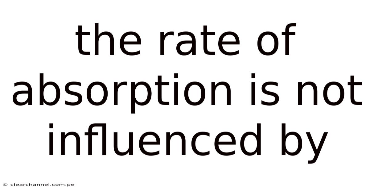 Therate of absorption is a fundamental concept in biology, chemistry, and pharmacology, describing how quickly a substance moves from its site of administration into the bloodstream or target tissues. Even so, a critical point often misunderstood is that the rate of absorption itself is not directly influenced by certain factors that might seem intuitively relevant. Understanding what influences this rate is crucial for optimizing drug delivery, nutrient uptake, and chemical processes. Let's get into the specifics of what truly drives absorption speed and clarify the common misconceptions.