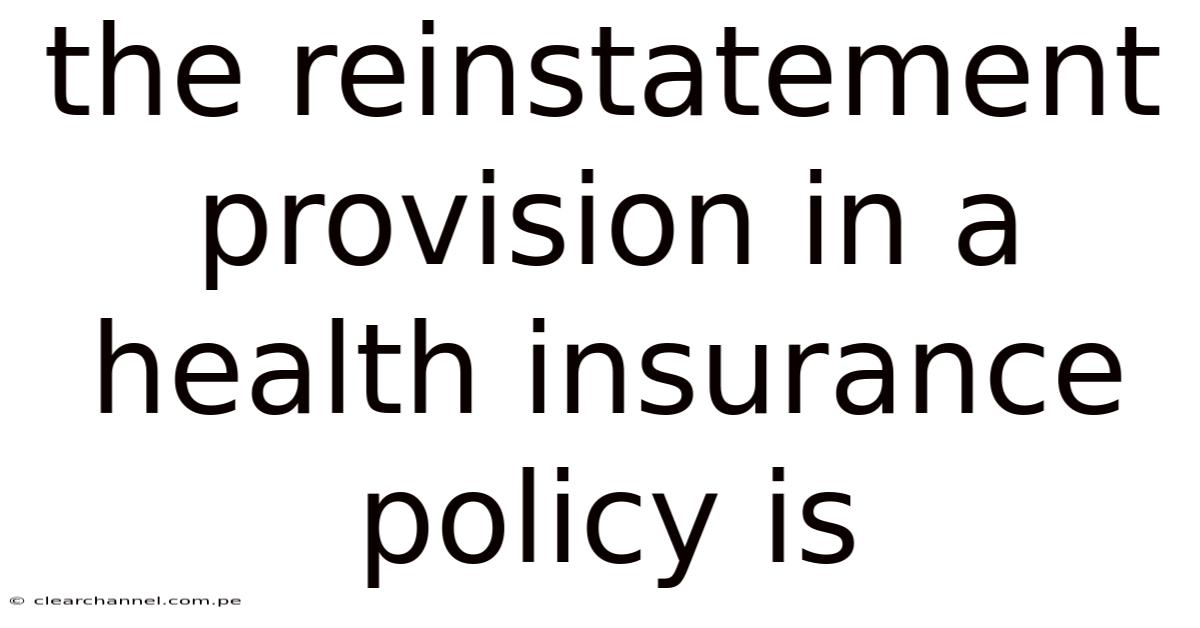 The Reinstatement Provision In A Health Insurance Policy Is