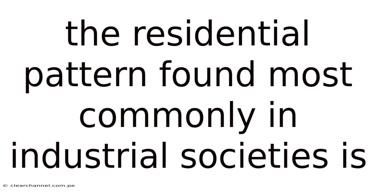 The Residential Pattern Found Most Commonly in Industrial Societies Is