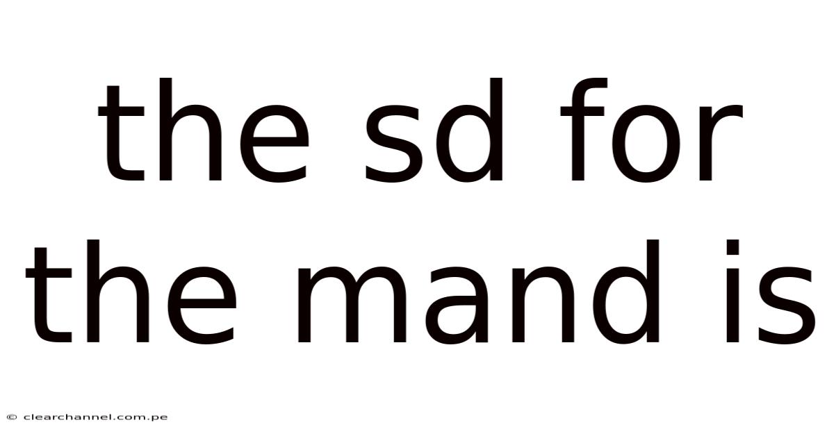 The concept of "SD for the Mand is" may initially seem abstract or unclear, but it holds significant relevance in specific contexts, particularly within frameworks of governance, policy, or organizational strategy. At its core, "SD" often refers to Sustainable Development, a term widely recognized in global agendas, while "Mand" could denote a mandate—a formal directive or requirement imposed by an authority. And together, "SD for the Mand is" might signify the application of sustainable development principles under a specific mandate, such as a government policy, corporate initiative, or international agreement. This article explores the meaning, implications, and practical applications of this concept, emphasizing its role in fostering long-term ecological, social, and economic balance Worth keeping that in mind..