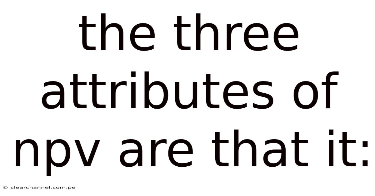 The financial landscape is a dynamic tapestry woven with threads of precision, uncertainty, and tangible value, where even the most seasoned professionals deal with its complexities with care. At the heart of this nuanced web lies Net Present Value (NPV), a metric that serves as a cornerstone for evaluating the financial health of investments, projects, or business decisions. Yet beneath its seemingly straightforward definition lies a multifaceted framework composed of three indispensable attributes that collectively shape its relevance and utility. These attributes—time value, risk/uncertainty, and cash flow alignment—act as the pillars upon which NPV stands as a trusted arbiter of profitability. Understanding these components is not merely an academic exercise but a practical necessity for anyone seeking to make informed economic choices. This article walks through each attribute in depth, exploring how they interplay to determine whether an investment or project justifies its inclusion in a portfolio, drives strategic planning, or ultimately influences long-term success. By unraveling their nuances, we uncover the hidden mechanics that underpin NPV’s enduring significance in both academic discourse and real-world applications, ensuring that its application remains both accurate and impactful Small thing, real impact. No workaround needed..
