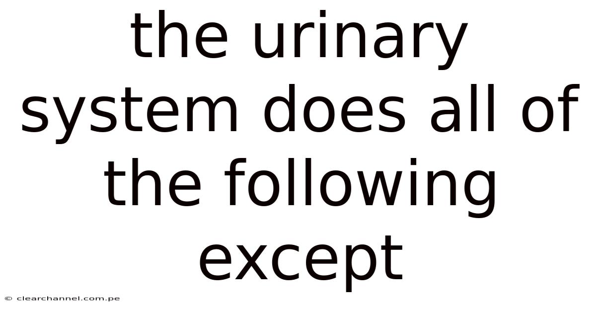 When an exam asks, “the urinary system does all of the following except,” the correct answer is the option that describes a function unrelated to the system’s physiological roles. Typical distractors might include: