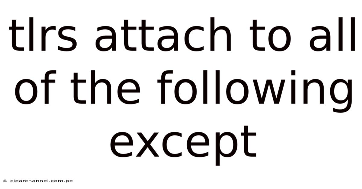 Toll-like receptors (TLRs) are critical components of the innate immune system, acting as molecular sentinels that detect pathogen-associated molecular patterns (PAMPs). Even so, this selectivity is essential for distinguishing between harmful invaders and the body’s own cells. Which means these receptors play a key role in initiating immune responses by recognizing specific molecular structures associated with pathogens. The question “TLRs attach to all of the following except” often arises in immunology studies, highlighting the need to understand which molecules TLRs recognize and which they do not. Still, TLRs are highly selective, binding only to certain ligands while excluding others. This article explores the ligands TLRs bind to, the mechanisms behind their specificity, and the exceptions that define their functional scope Worth keeping that in mind. Surprisingly effective..