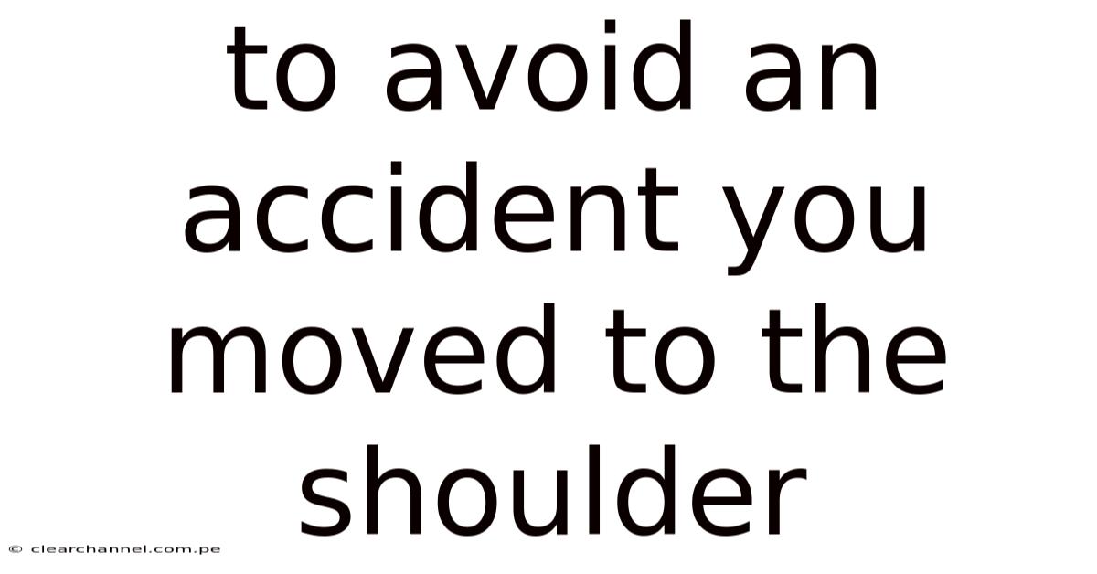 If you're sense that a collision is imminent, instinctively shifting your vehicle toward the shoulder can be a lifesaving maneuver. Moving to the shoulder is not just a random reaction; it is a deliberate technique that, when executed correctly, creates the space needed to avoid a crash and protect everyone on the road. This article breaks down the why, the how, and the common pitfalls associated with this critical driving skill, giving you a complete roadmap to avoid an accident you moved to the shoulder safely and effectively Most people skip this — try not to..
