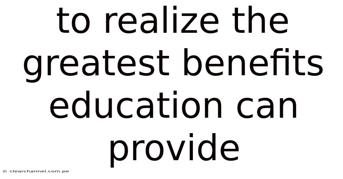 To Realize The Greatest Benefits Education Can Provide
