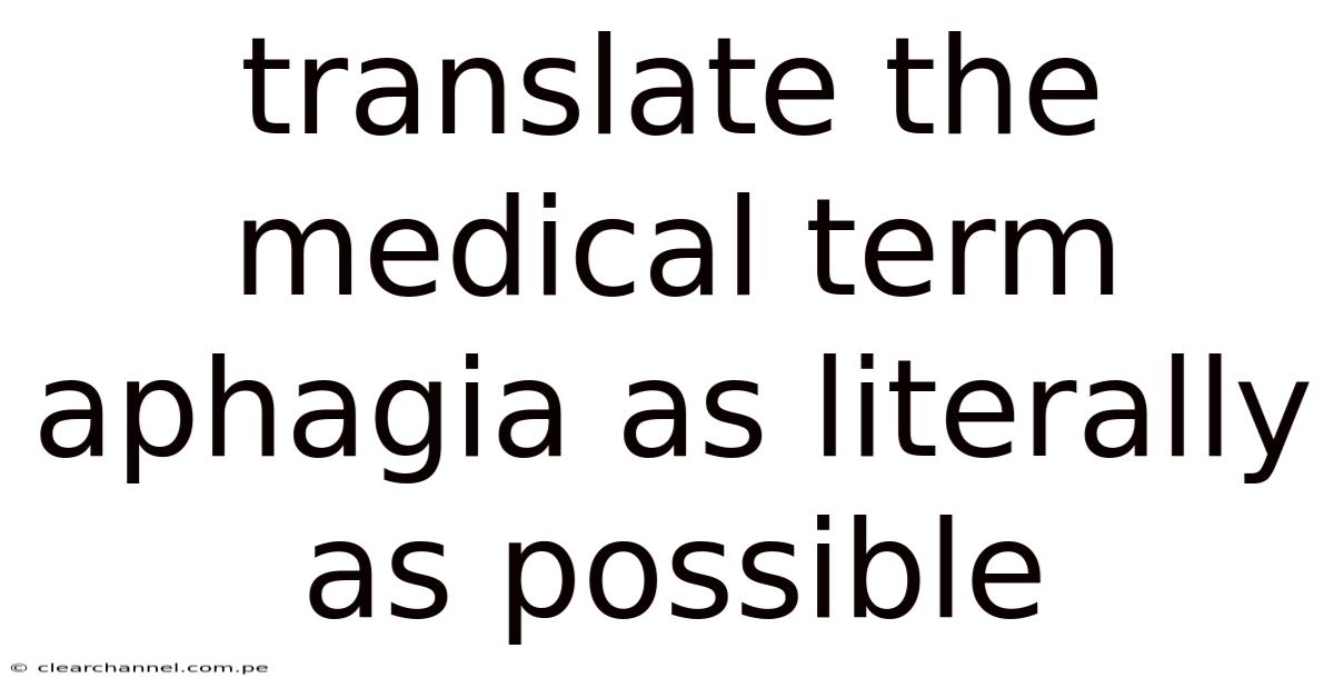 Aphagia is a medical term that describes the complete inability to swallow food or liquids. This condition represents a serious medical concern that can lead to malnutrition, dehydration, and various complications if left untreated. Understanding the literal meaning of aphagia, its causes, and its implications is essential for patients, caregivers, and healthcare professionals alike Worth knowing..