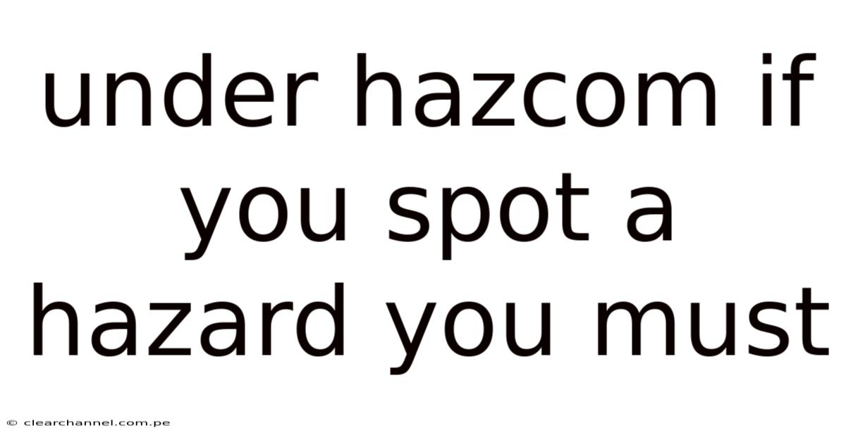 Under Hazcom if you spot a hazard you must prioritize safety as the foundation of any operational success. Hazcom, an acronym commonly associated with Hazmat Operations Management, emphasizes the critical role of vigilance in environments where chemical, biological, radiological, or explosive substances are present. Whether managing industrial facilities, laboratories, or transportation hubs, understanding Hazcom protocols ensures that potential dangers are identified and mitigated before they escalate into crises. In this context, the ability to discern subtle signs of danger becomes a cornerstone of effective risk management. Whether a flicker of smoke, an unusual odor, or irregular equipment behavior signals an issue, recognizing these indicators allows teams to act proactively rather than reactively. This article walks through the nuanced process of hazard detection within Hazcom frameworks, exploring how professionals balance precision with urgency to uphold safety standards. Think about it: by integrating technical knowledge with practical application, we aim to equip readers with the tools necessary to work through complex scenarios confidently. The goal is not merely to detect anomalies but to transform them into opportunities for intervention, ensuring that every potential threat is addressed before it compromises personnel, property, or public trust.