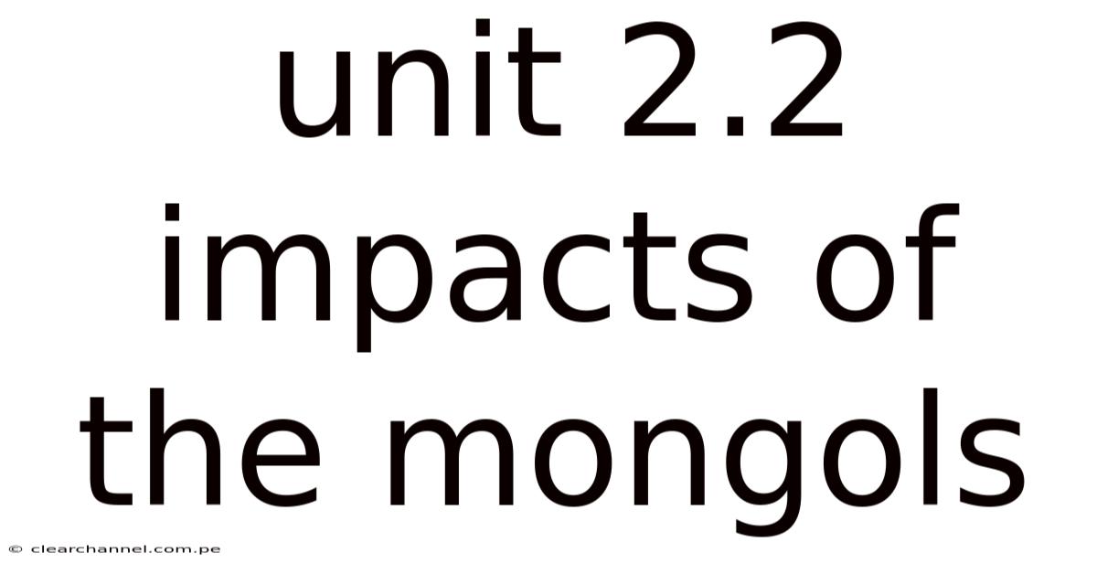 Unit 2.2 Impacts of the Mongols: Transforming the Medieval World