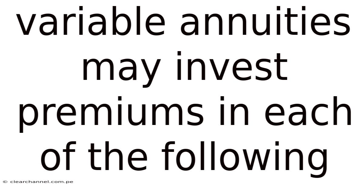 Variable Annuities May Invest Premiums In Each Of The Following