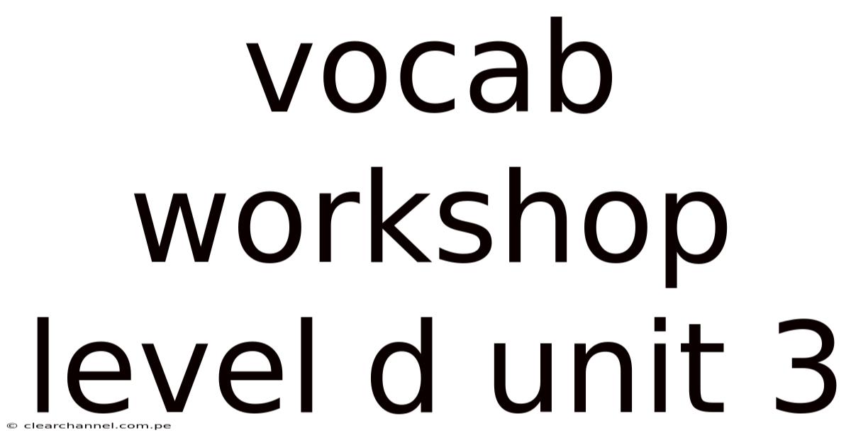 Vocabulary Workshop Level D Unit 3 introduces students to a new set of challenging words designed to expand their language skills and comprehension. In practice, this unit focuses on words that are commonly used in academic, literary, and professional contexts, making it an essential part of building a strong vocabulary foundation. By mastering these words, students can improve their reading, writing, and communication abilities, which are crucial for academic success and personal growth And that's really what it comes down to..