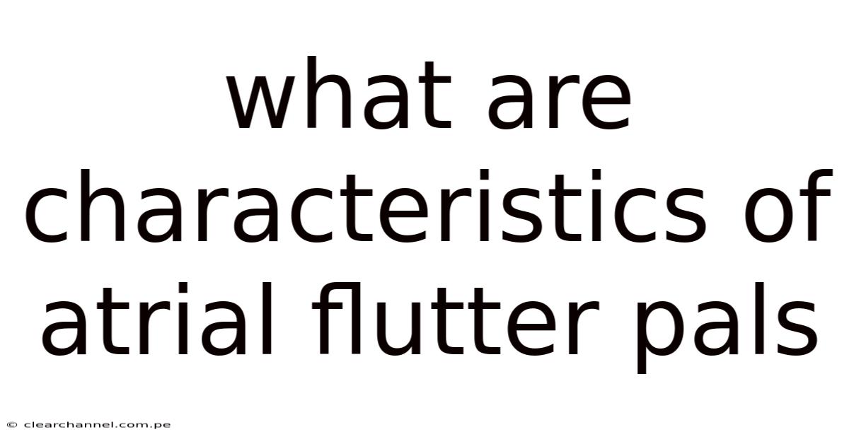 Understanding the characteristics of atrial flutter pals is essential for healthcare professionals and patients alike, as it helps in accurate diagnosis and effective treatment planning. In real terms, atrial flutter pals refers to a specific pattern observed in the electrical activity of the heart during flutter episodes. This condition is marked by rapid and rhythmic contractions of the atria, which can significantly impact heart function and overall cardiovascular health. In this article, we will look at the key characteristics of atrial flutter pals, exploring how they manifest, their implications, and the importance of recognizing them early Worth keeping that in mind..