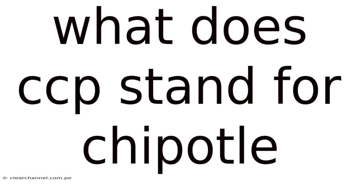 The first step in addressing the question "what does CCP stand for chipotle" is to recognize that the term may not have a direct or standardized meaning. Day to day, chipotle’s official name is Chipotle Mexican Grill, and its branding typically revolves around terms like "Chipotle," "Mexican Grill," or specific menu items such as "Chipotle Chicken" or "Chipotle Steak. " The acronym "CCP" does not appear in any of the company’s public-facing materials, including menus, advertisements, or corporate communications Not complicated — just consistent. Turns out it matters..