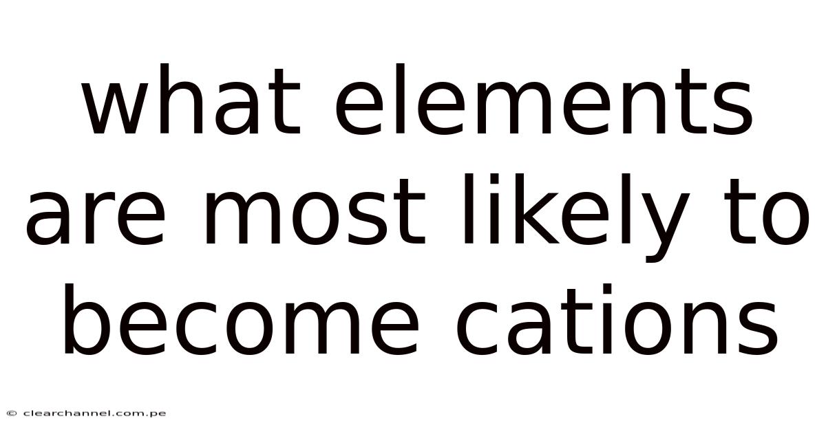 This article will explore the specific groups and categories of elements that exhibit the highest propensity to become cations. Consider this: we will examine the underlying scientific principles, including ionization energy and electron configuration, that dictate this behavior. By the end, you will have a comprehensive understanding of the metals and other substances most prone to losing electrons and forming positive charges Turns out it matters..