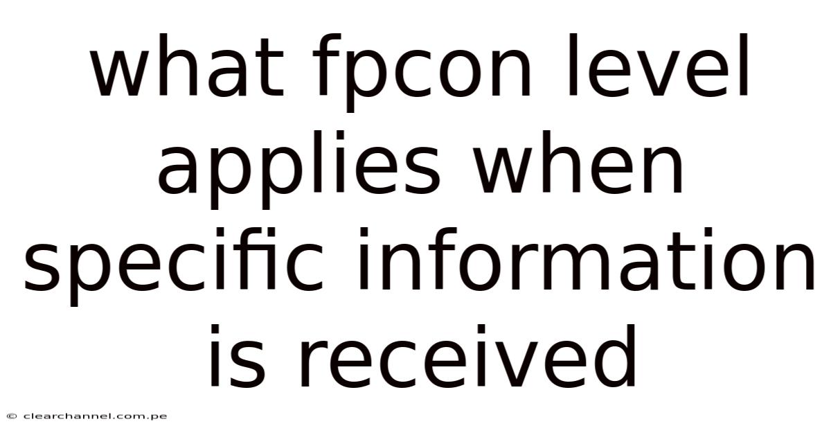 The layered dance between data precision and contextual understanding defines the essence of modern analytical practices. That's why in an era where information proliferation demands discernment, the ability to discern relevance from noise becomes a cornerstone of success. On top of that, this article walks through the nuanced application of FPCon Level when specific information is received, exploring its implications for decision-making, strategy formulation, and operational efficiency. By examining how this level acts as a filter, it enables stakeholders to manage complex datasets with clarity, ensuring that only pertinent insights drive action. Consider this: whether dealing with financial metrics, scientific findings, or operational metrics, the FPCon Level serves as a critical gatekeeper, distinguishing between noise and value. Its relevance extends beyond mere data processing; it shapes the trajectory of outcomes, influencing priorities, resource allocation, and long-term goals. Because of that, in this context, understanding the interplay between specificity and application is very important, as even the most comprehensive data can falter without proper contextualization. The challenge lies in balancing the volume of information with the need for focused analysis, a task that requires both technical expertise and strategic foresight. Through this lens, the FPCon Level emerges not as a static concept but as a dynamic tool, adaptable to varying scenarios while maintaining its core purpose of enhancing relevance. Its application demands a nuanced approach, where precision meets purpose, and every detail is weighed against its significance. Even so, as organizations increasingly rely on data-driven decisions, the FPCon Level stands as a testament to the importance of intentionality in interpreting information. This article will explore its multifaceted role, offering insights that can transform how individuals and teams approach information management, ensuring that what is received is not only accurate but also actionable Still holds up..