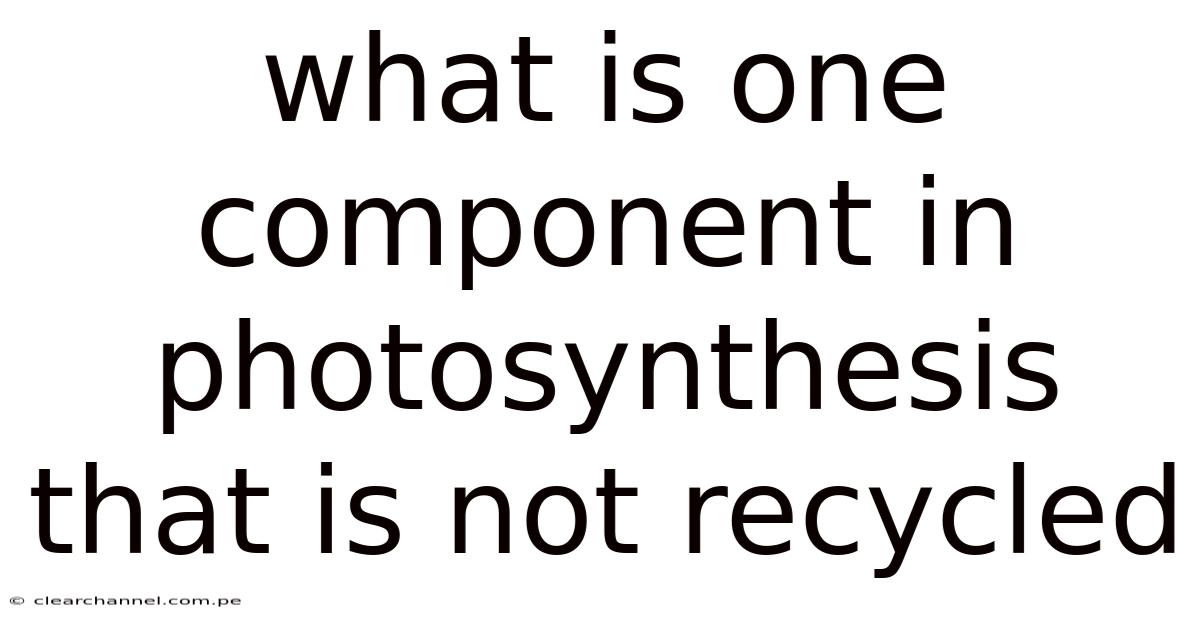 The inquiry what is one component in photosynthesis that is not recycled reveals a cornerstone of photosynthetic biology: