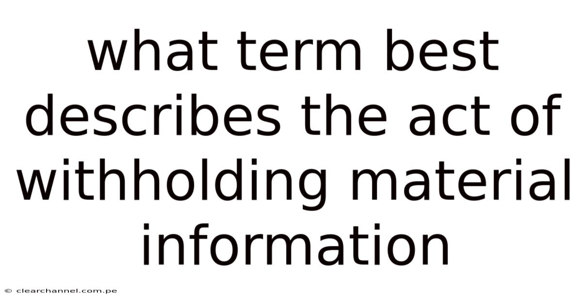 The Legal and Ethical Weight of Silence: What Term Best Describes Withholding Material Information?
