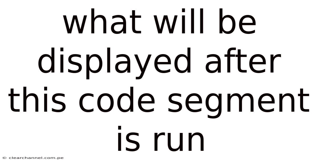 The phrase what will be displayed after this code segment is run serves as both a question and a diagnostic tool. It prompts programmers to consider the immediate result of a code block, the side effects that may follow, and the broader context in which the execution occurs. By examining the mechanics of output generation, you can anticipate console messages, variable values, and UI updates, thereby reducing surprises and improving code reliability.