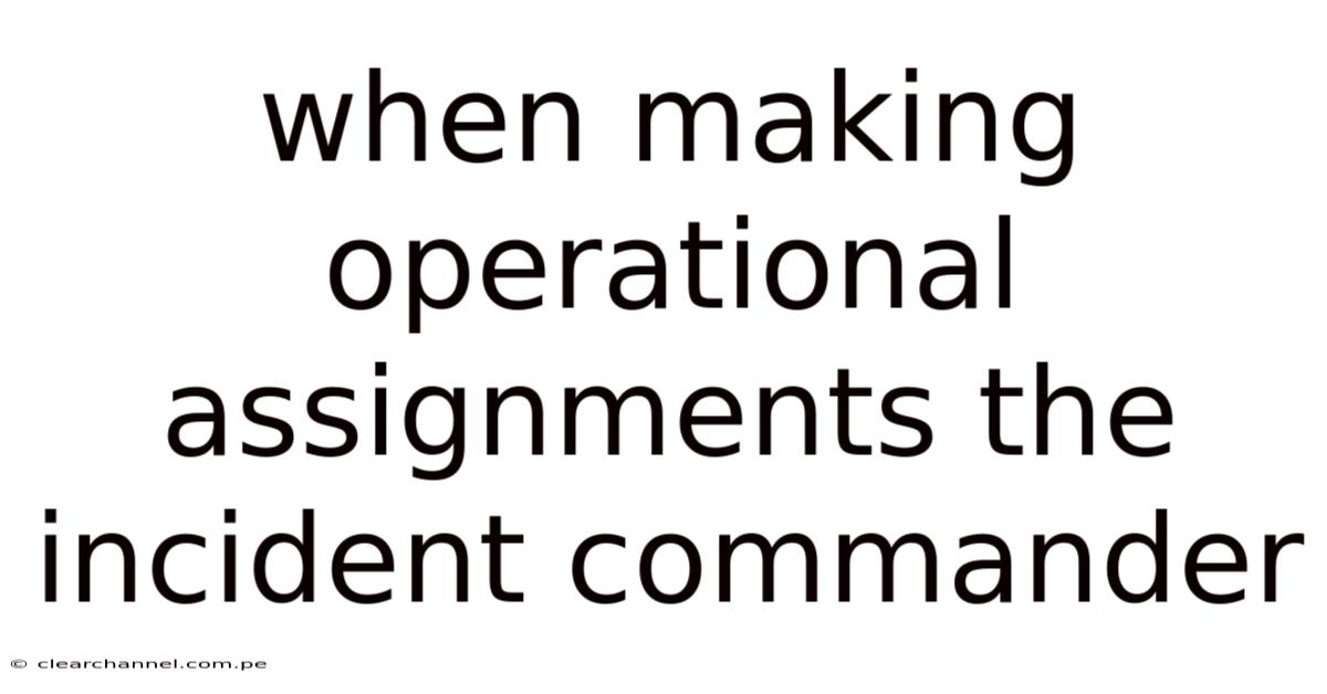 When making operational assignments the incident commander mustbalance safety, effectiveness, and the evolving nature of the incident while adhering to the core tenets of the Incident Command System (ICS). This responsibility is more than a simple task‑list; it shapes how resources are deployed, how personnel understand their roles, and ultimately how quickly the situation stabilizes. Below is a comprehensive guide that walks through the theory, practical steps, common pitfalls, and proven best practices for assigning operational duties during an emergency response.