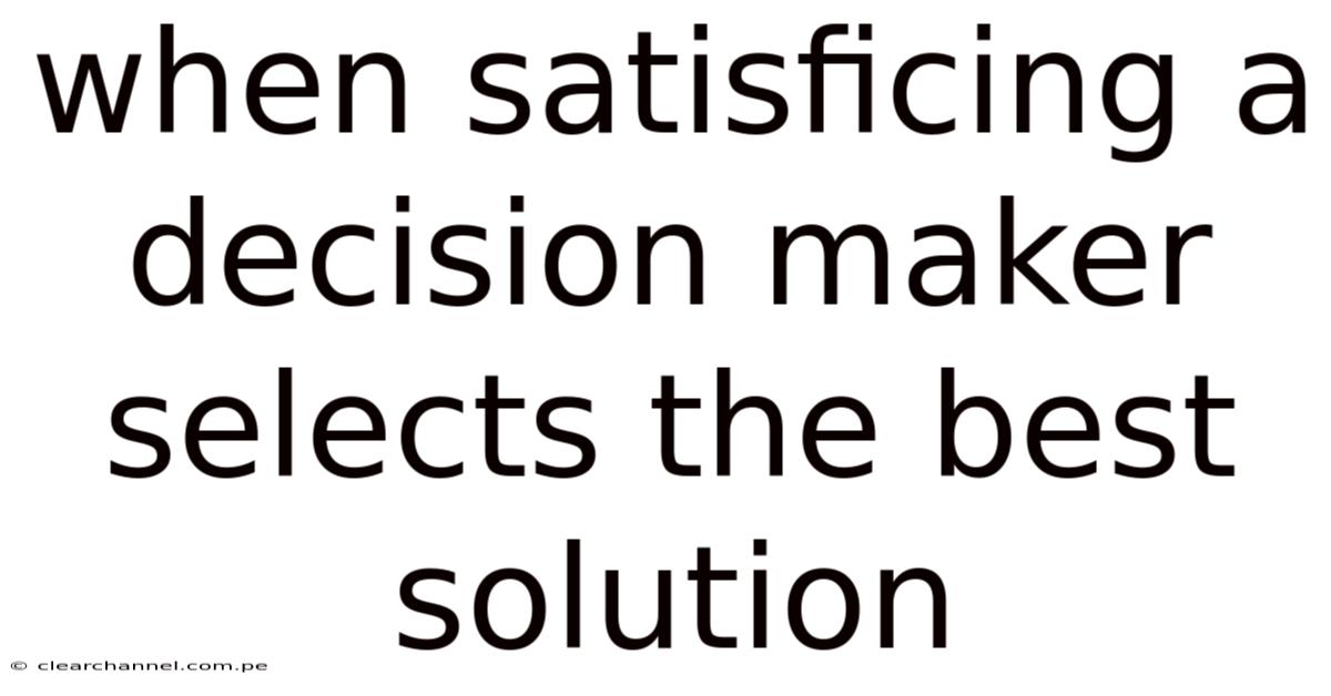 In the realm of decision-making, the term satisficing often sparks curiosity. Coined by Nobel laureate Herbert Simon, satisficing refers to the process of selecting a solution that meets a minimum threshold of acceptability rather than pursuing the absolute optimal choice. And while this approach might seem counterintuitive—why settle for “good enough” when striving for perfection seems ideal? —there are scenarios where satisficing not only works but becomes the most effective strategy. This article explores the conditions under which a decision maker might choose the best solution through satisficing, blending psychological insights, real-world examples, and actionable steps to work through complex choices That's the part that actually makes a difference. Turns out it matters..