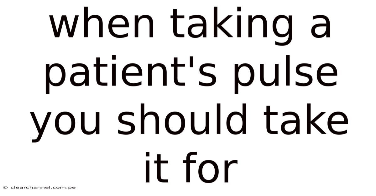 When taking a patient's pulse you should take it for a period that yields an accurate reflection of the heart’s rhythm and rate. The length of time you palpate the arterial pulse directly influences the reliability of the measurement, especially in clinical settings where decisions about medication, fluid status, or cardiac stability hinge on this simple vital sign. Understanding the rationale behind different timing strategies helps clinicians, nurses, and even trained caregivers obtain consistent, reproducible results while minimizing error.