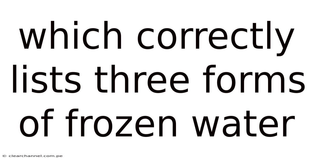 Frozen water forms include ice, snow, and frost, and each plays a distinct role in nature and daily life. Water is unique because it expands when it solidifies, and this behavior shapes landscapes, weather, and ecosystems. On top of that, understanding which correctly lists three forms of frozen water helps us appreciate how water moves through different states and supports life on Earth. In this article, we will explore these forms in depth, explain the science behind them, and show why they matter for climate, safety, and human activity That's the part that actually makes a difference. Less friction, more output..