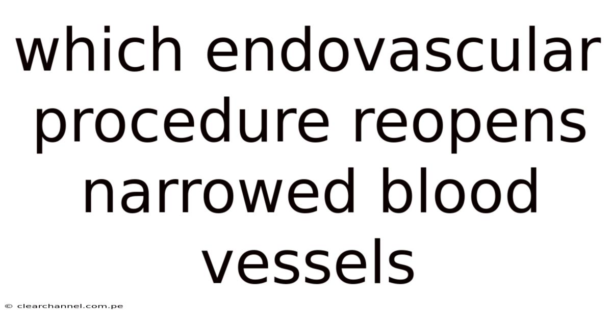 Which endovascular procedure reopens narrowed blood vessels? This question lies at the heart of modern vascular medicine, where interventional techniques transform the lives of patients battling arterial stenosis, peripheral artery disease, and coronary blockages. In this article we explore the suite of minimally invasive options that restore blood flow by dilating or removing obstructive lesions, explain the science behind their success, and answer the most common queries that patients and clinicians alike encounter But it adds up..