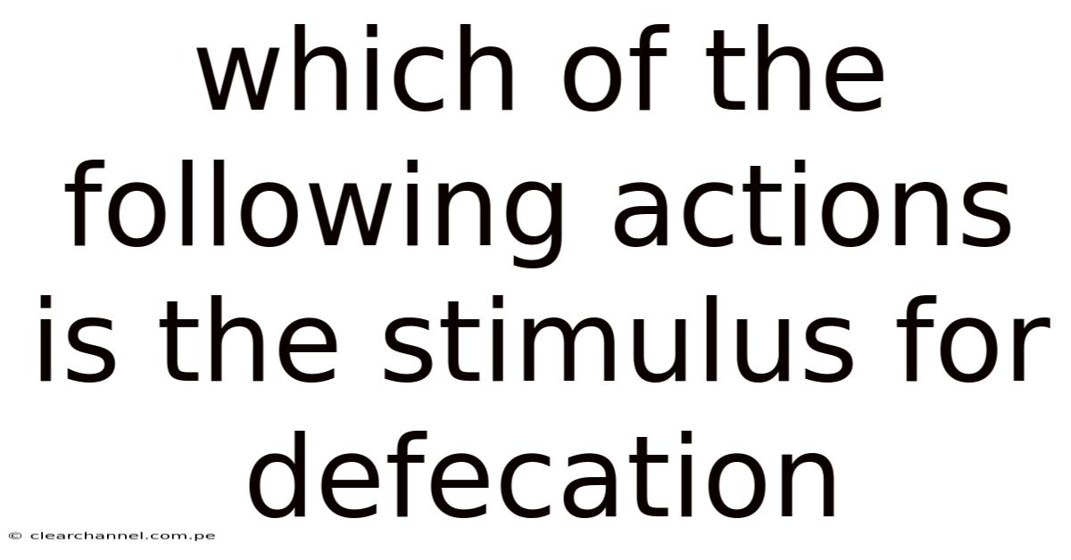 The question which of the following actions is the stimulus for defecation has a clear, evidence-based answer: rectal distension. This mechanical stretching of the rectal walls activates specialized nerve receptors that launch a coordinated reflex arc, ultimately leading to bowel elimination. Understanding this physiological reality empowers you to align your habits with your body’s natural rhythms. Here's the thing — while diet, hydration, meal timing, and emotional states all influence digestive health, they function as supporting factors rather than the primary trigger. By responding promptly to the urge, prioritizing fiber-rich nutrition, and maintaining consistent hydration, you support a healthy, efficient defecation reflex that contributes to long-term gastrointestinal wellness. The next time you encounter this concept in academic or clinical settings, you will not only identify the correct stimulus but also appreciate the complex biological coordination that makes everyday elimination possible.