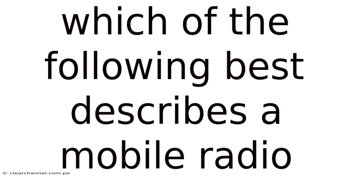 Mobile radios are an essential communication tool used across various industries and by individuals who require reliable, on-the-go connectivity. But what exactly is a mobile radio, and how does it differ from other types of radios? This article aims to demystify mobile radios by exploring their characteristics, applications, and the technology behind them. By the end, you'll have a clear understanding of which of the following best describes a mobile radio.
