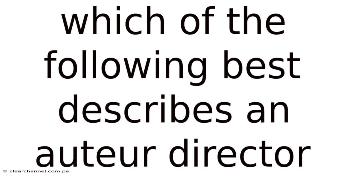 The term auteur director has become a cornerstone of film criticism, film studies curricula, and even casual movie‑goer conversations. When someone asks, “Which of the following best describes an auteur director?On the flip side, ” they are usually looking for a concise definition that captures the essence of the auteur theory while also highlighting the practical traits that set such filmmakers apart from their peers. That said, in short, an auteur director is a filmmaker whose personal vision, style, and thematic preoccupations dominate every aspect of a film, making the work instantly recognizable as “theirs” regardless of genre, budget, or studio constraints. This article unpacks that definition, explores its historical roots, outlines the key characteristics that signal auteur status, and provides a handy checklist for identifying an auteur in the modern cinema landscape And that's really what it comes down to. Took long enough..