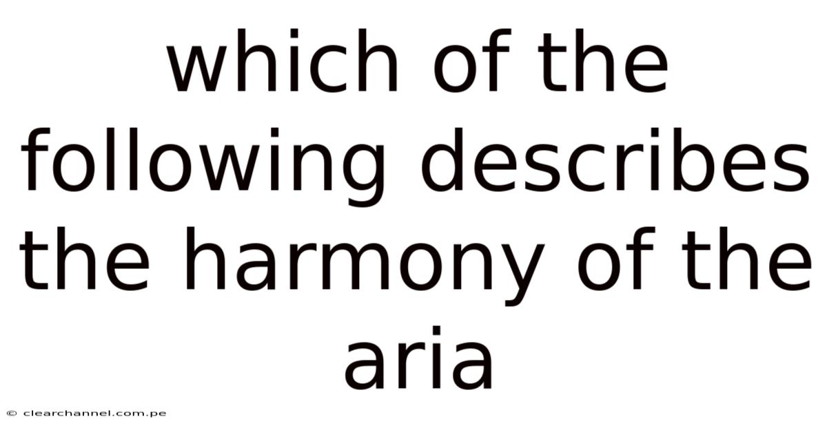 The nuanced tapestry of an aria’s emotional power often rests not solely on its soaring melody but on the subtle, complex interplay of harmony beneath it. So naturally, harmony, the simultaneous combination of tones, provides the harmonic foundation, emotional color, and structural framework that elevates a simple tune into a profound musical statement. In real terms, it’s the invisible architecture supporting the vocal line, shaping tension and resolution, and guiding the listener’s emotional journey. Understanding which of the following descriptions best captures this harmonic essence is key to appreciating the depth composers weave into their vocal masterpieces. Let’s dissect the harmonic possibilities and identify the core principle governing the aria’s harmonic landscape.
