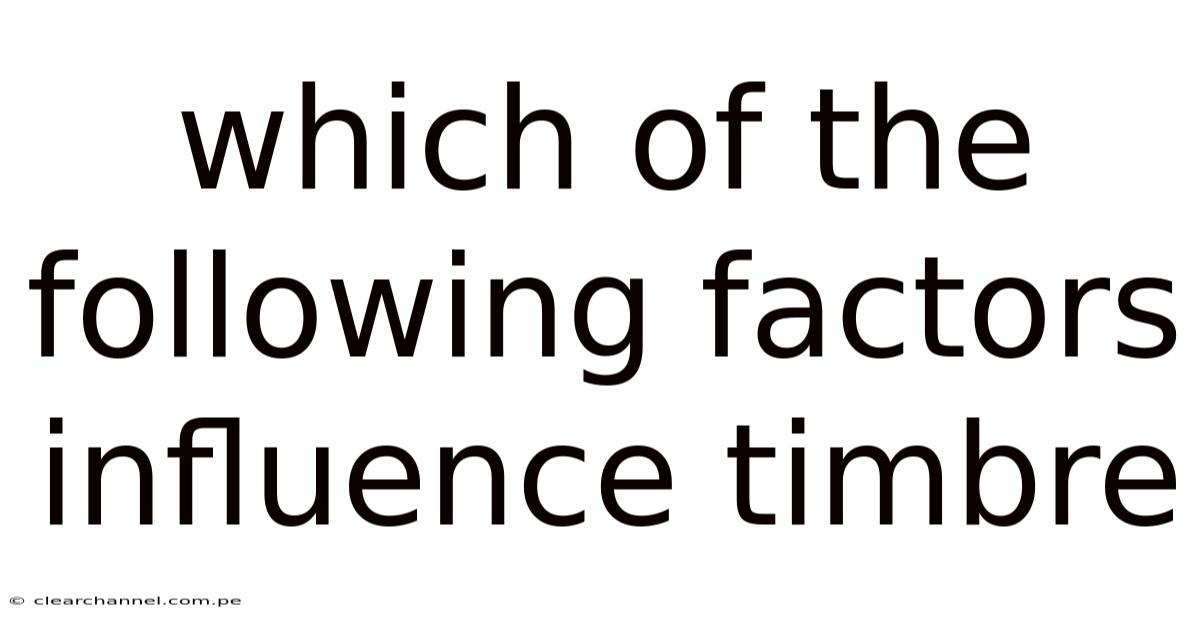 Timbre, often described as the “color” or “quality” of a sound, is what allows us to distinguish a violin from a flute even when they play the same pitch at the same loudness. Unlike pitch and loudness, which are primarily governed by fundamental frequency and amplitude, timbre emerges from a complex interaction of several acoustic properties. Understanding which of the following factors influence timbre is essential for musicians, audio engineers, and anyone curious about how sound shapes our perception. Below we explore the core elements that sculpt timbre, explain why each matters, and illustrate how they manifest in real‑world instruments and electronic synthesis.