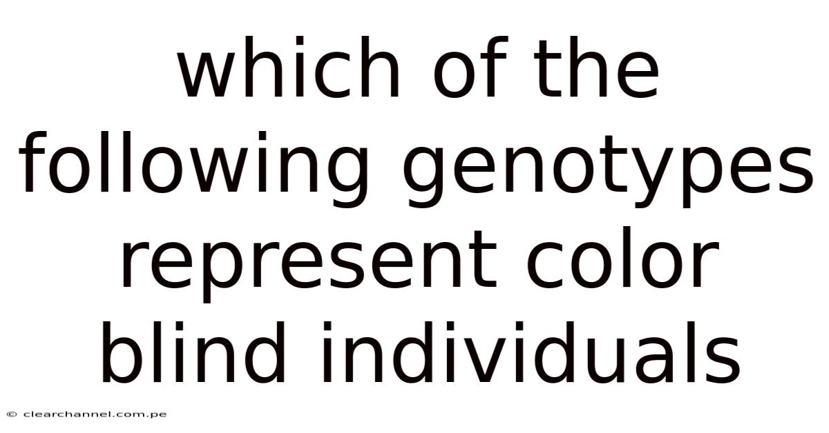 When asking which of the following genotypes represent color blind individuals, the answer depends on the specific mutation and the gender of the carrier. Below is a concise list of the most frequently encountered genotypes:
