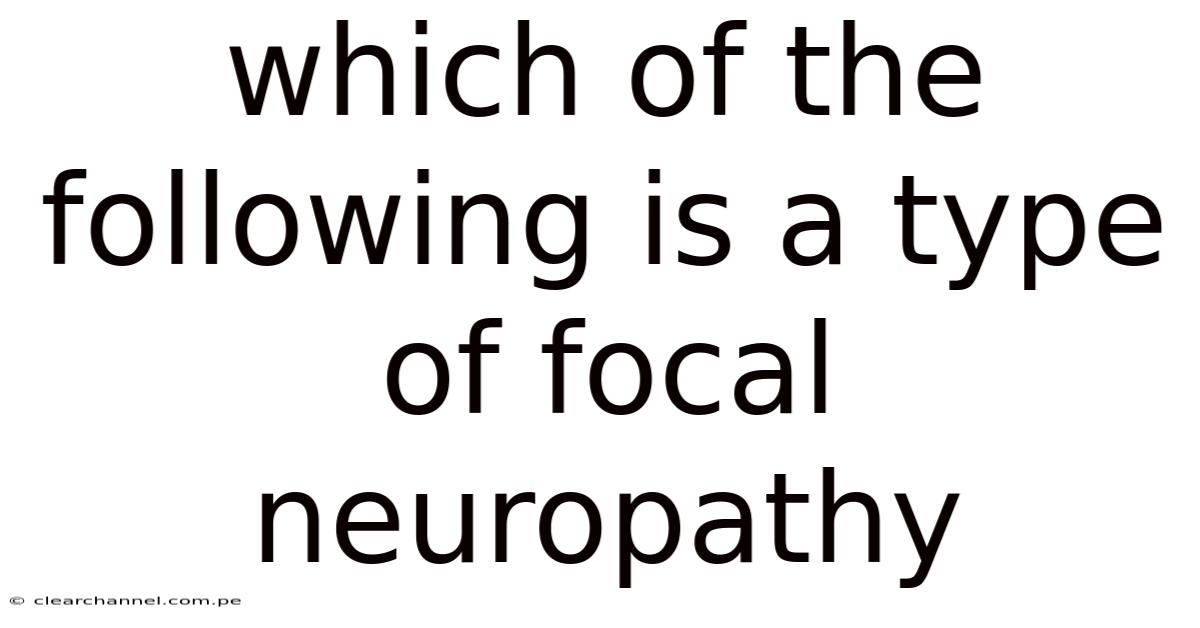 Focalneuropathy refers to nerve damage that affects a specific nerve or a small group of nerves, resulting in symptoms such as pain, weakness, or numbness confined to a particular region of the body; when asking which of the following is a type of focal neuropathy, the answer typically includes conditions like diabetic mononeuropathy, ulnar nerve palsy, and cranial mononeuropathy, each of which targets a distinct nerve pathway and produces localized neurological manifestations Worth knowing..