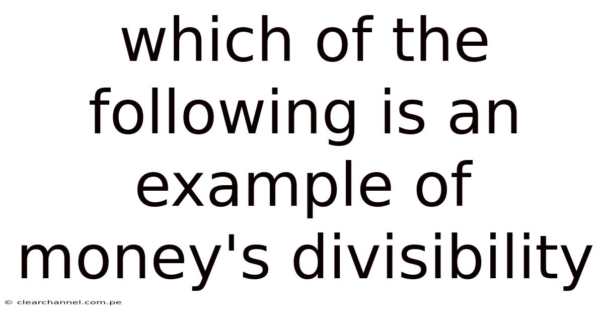 Imagine you have a $10 bill in your pocket. You want to buy a candy bar that costs $1.You can't tear the bill in half and expect it to work like cash. Practically speaking, what do you do? 50. In real terms, divisibility is one of the essential characteristics that make money useful in everyday transactions. And that's where the concept of divisibility in money comes into play. Without it, our economy would be far less efficient and much more complicated.
