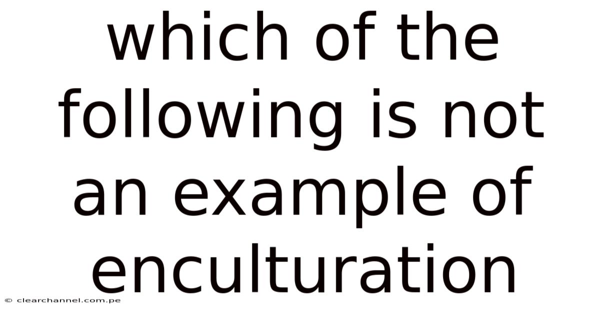 We must identify the choice that does not qualify as enculturation. Let’s analyze each one It's one of those things that adds up..