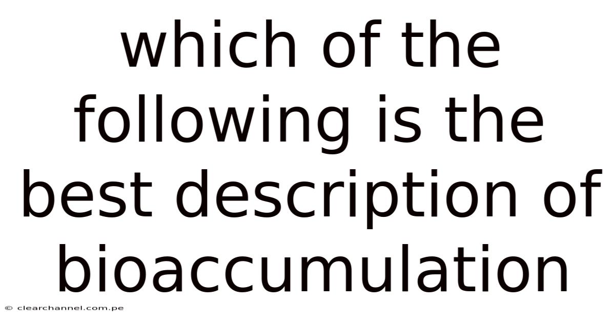 Understanding the concept of bioaccumulation is fundamental to grasping how pollutants move through our environment and eventually impact human health. Now, if you are studying environmental science or preparing for an exam, you have likely encountered the question: "Which of the following is the best description of bioaccumulation? In real terms, " To answer this accurately, one must distinguish it from similar terms like biomagnification and bioconcentration. Now, in its simplest form, **bioaccumulation refers to the gradual accumulation of substances, such as pesticides or other chemicals, in an organism. ** This process occurs when an organism absorbs a substance at a rate faster than that at which the substance is lost or eliminated through excretion and metabolism.