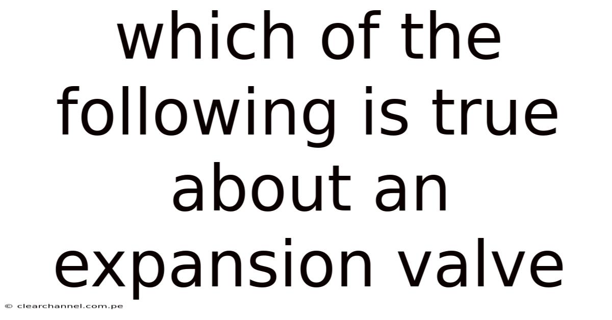 Which of the following is true about an expansion valve is a common question in the fields of HVAC, refrigeration, and thermal engineering. This component plays a critical role in regulating the flow of refrigerant, ensuring that systems operate efficiently and safely. Understanding the function, types, and behavior of expansion valves is essential for technicians, engineers, and anyone involved in climate control or industrial cooling processes. This article provides a comprehensive exploration of expansion valves, their mechanisms, applications, and the truths that define their operation Most people skip this — try not to..