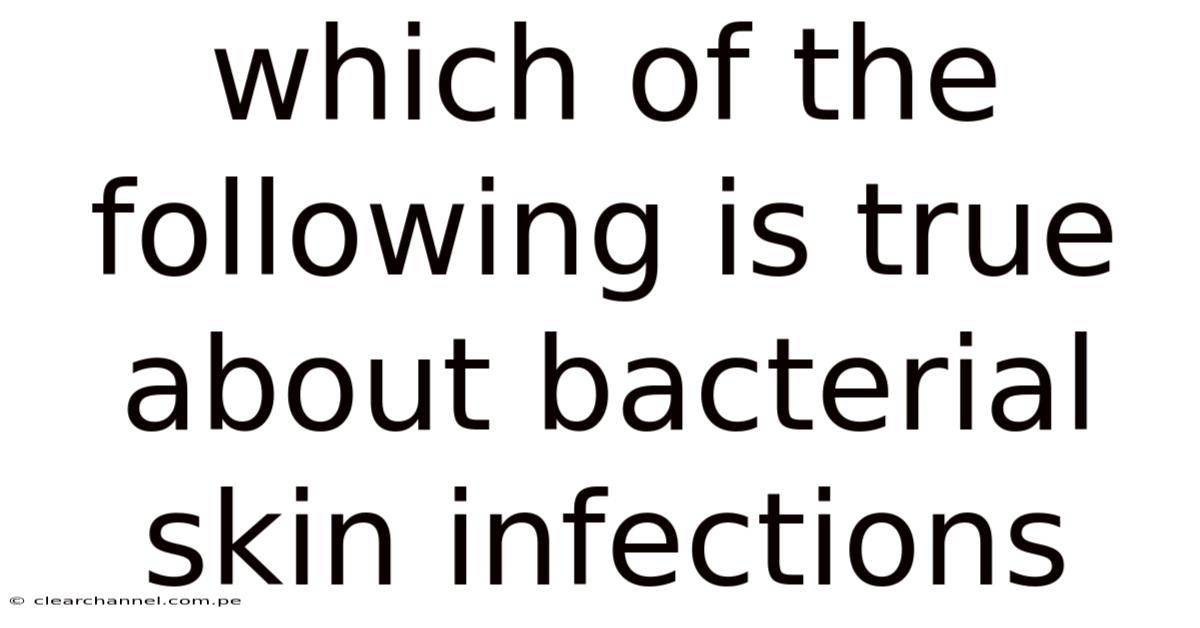 The human body is a complex ecosystem where each cell plays a critical role in maintaining health and functionality. That's why among the many components that contribute to this nuanced system, the skin serves as both a protective barrier and a site where various physiological processes unfold. Yet, not all aspects of skin biology are equally understood, and certain conditions that affect its integrity often go unrecognized until they manifest as discomfort or visible signs. In real terms, among these, bacterial skin infections represent a critical area where awareness can significantly impact outcomes. Practically speaking, these infections, though common, are often overlooked due to their insidious nature or the misconception that they are merely minor irritations. Which means understanding which of the listed factors accurately describes bacterial skin infections is essential for effective management and prevention. This article walks through the nuances surrounding bacterial skin infections, exploring their prevalence, common causes, diagnostic challenges, and treatment strategies. Day to day, by examining the interplay between microbial agents, host responses, and environmental factors, we gain deeper insight into why these infections persist despite advancements in medical science. The complexity of the topic demands a thorough approach, requiring attention to detail while maintaining clarity. Think about it: it is within this context that the exploration of bacterial skin infections becomes not merely an academic exercise but a practical necessity for individuals seeking to safeguard their well-being. The implications of such knowledge extend beyond individual health, influencing public health policies and personal hygiene practices on a broader scale. So as we manage this subject, the importance of accurate understanding cannot be overstated, as it underpins effective interventions and informs clinical decisions. In practice, the journey into this domain reveals layers of biological, psychological, and societal dimensions, each contributing to the overall picture. Also worth noting, the relationship between bacterial infections and their prevalence is influenced by numerous variables, including climate, lifestyle, and even genetic predispositions. That's why this multifaceted landscape necessitates a holistic perspective when addressing bacterial skin infections, ensuring that solutions are both targeted and comprehensive. Through this comprehensive examination, we aim to illuminate the critical role that bacterial skin infections play in the human body, while also highlighting the strategies that can mitigate their impact. The following sections will dissect specific factors that align with or contradict this assertion, offering a nuanced view that underscores the significance of this topic.