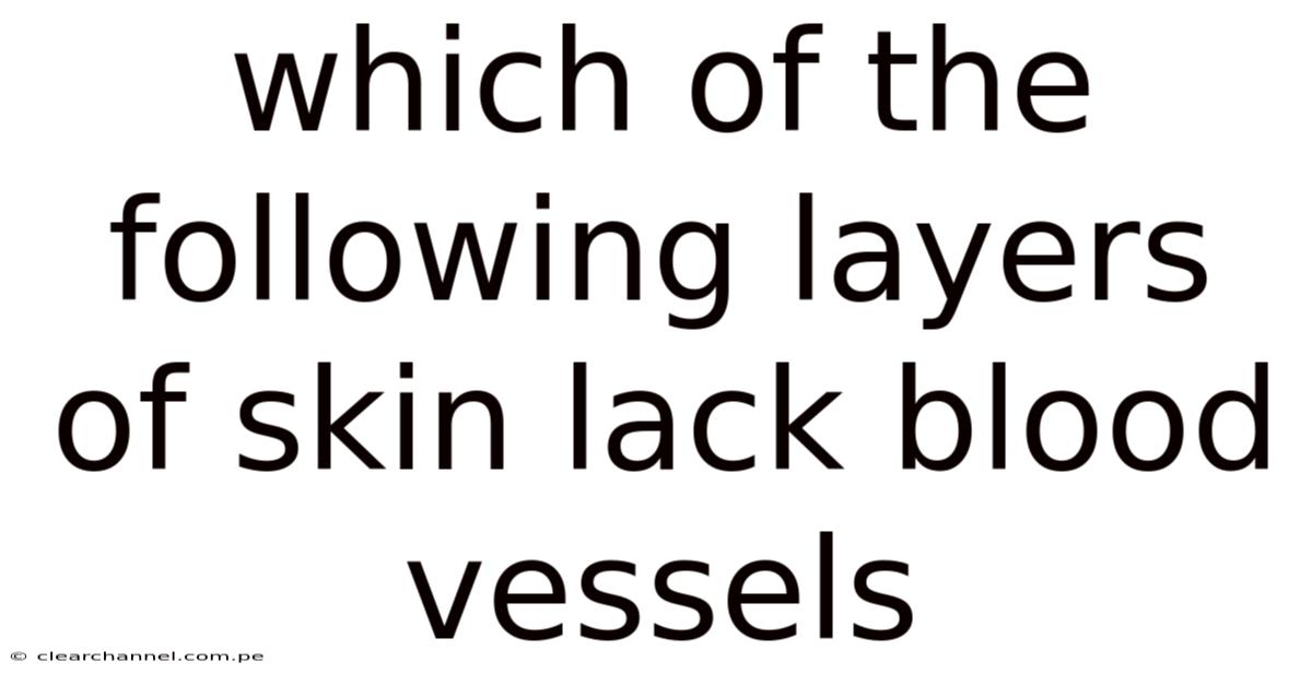 The layer of skin that lacks blood vessels is the stratum corneum, the outermost layer of the epidermis, and understanding which of the following layers of skin lack blood vessels helps clarify its role in protection, barrier function, and overall skin health. That's why this question often appears in anatomy and physiology curricula, prompting students to differentiate between the vascular dermis and the avascular epidermis. By exploring the structural organization of the skin, the reasons behind the absence of capillaries in certain layers, and the implications for disease and treatment, readers can gain a comprehensive view that goes beyond a simple factual answer Took long enough..