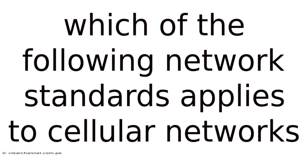 Cellular networks have become the backbone of modern communication, connecting billions of devices worldwide through sophisticated wireless technology. Even so, understanding which network standards apply to cellular networks is essential for anyone interested in telecommunications, mobile technology, or simply staying connected in today's digital age. These standards determine everything from call quality and data speeds to coverage areas and device compatibility And that's really what it comes down to..