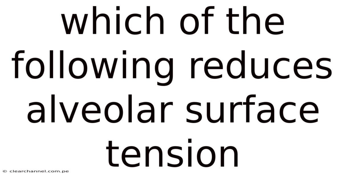 Which of the following reduces alveolar surface tension is a fundamental question in respiratory physiology, and the answer hinges on the unique properties of pulmonary surfactant. Understanding how surface tension within the alveoli is regulated not only clarifies the mechanics of breathing but also explains why surfactant deficiency can precipitate severe lung disorders such as neonatal respiratory distress syndrome. This article explores the biological mechanisms, the specific agents that lower alveolar surface tension, and the broader implications for respiratory health, all presented in a clear, SEO‑optimized format Not complicated — just consistent..
