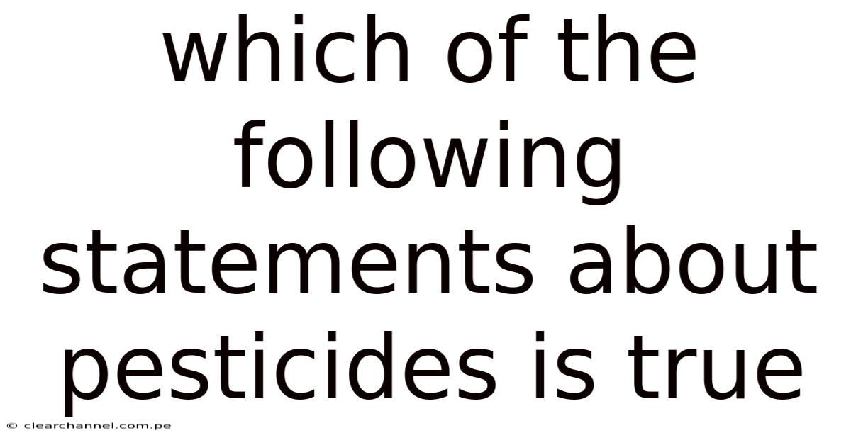 Understanding the impact of pesticides is crucial for anyone interested in agriculture, environmental science, or public health. When we talk about pesticides, we often find ourselves navigating complex information that can be both informative and confusing. That's why the question at hand is clear: which of the following statements about pesticides is true? To help you grasp the significance of this topic, we will explore the key aspects of pesticide use, their effects, and the importance of making informed decisions Nothing fancy..