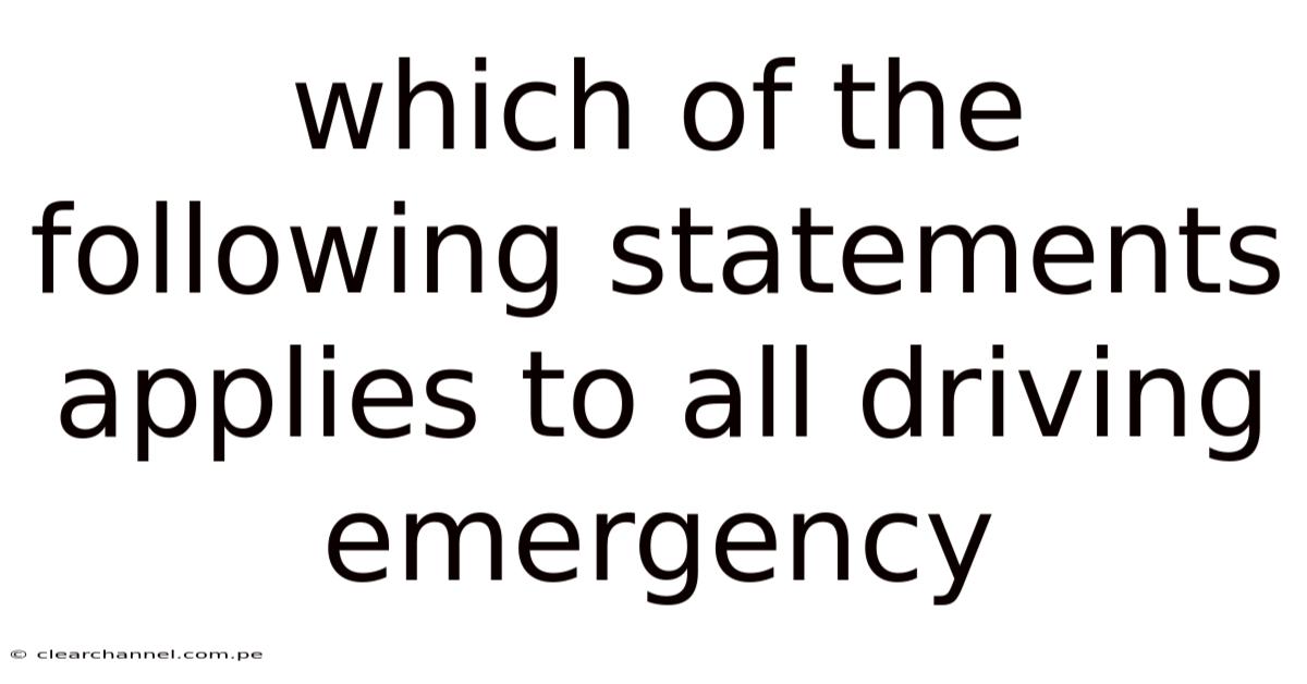 When a sudden incident occurs on the road, drivers often wonder which of the following statements applies to all driving emergencies? The answer is not a single bullet point but a set of universal principles that protect lives, preserve vehicle control, and ensure a coordinated response. This article breaks down those core statements, explains why they are non‑negotiable, and provides a practical roadmap for handling any crisis behind the wheel. Whether you are a new driver studying for a license test or an experienced motorist looking to refresh your emergency protocol, understanding these universal rules will keep you prepared for the unexpected.