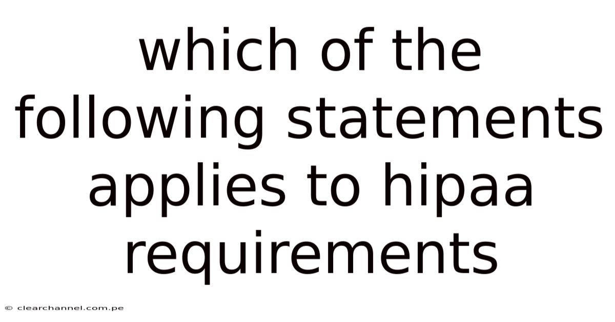 The landscape of healthcare privacy has undergone a profound transformation in recent decades, driven by regulatory frameworks designed to safeguard sensitive personal information while balancing the need for operational efficiency and patient access. So among the most central developments in this domain is the implementation of HIPAA—Health Insurance Portability and Accountability Act—specifically its provisions governing the protection of individual health information. Plus, hIPAA stands as a cornerstone of privacy standards in the United States, influencing not only healthcare providers but also insurers, employers, and even patients themselves. Its mandate extends beyond mere data protection to encompass a holistic approach to ensuring trust, compliance, and ethical practice within the healthcare sector. On the flip side, within this context, understanding which of the listed statements aligns with HIPAA requirements becomes critical for professionals navigating the complexities of modern healthcare systems. Among these statements, several emerge as foundational pillars that define the essence of HIPAA compliance, shaping how organizations manage, share, and safeguard patient data effectively. These principles not only address legal obligations but also support a culture of responsibility that permeates every level of healthcare delivery. The intricacies of HIPAA necessitate a nuanced understanding of its implications, requiring stakeholders to adapt their practices continually to stay aligned with evolving standards. Such alignment ensures that organizations remain not only compliant but also proactive in mitigating risks associated with data breaches, unauthorized disclosures, or misinterpretations of regulatory expectations. Adding to this, the application of these statements within HIPAA’s framework underscores their role in defining accountability, fostering collaboration among diverse parties involved in healthcare, and reinforcing the collective commitment to upholding patient trust. As organizations strive to handle the dual demands of compliance and operational effectiveness, the correct interpretation of HIPAA’s tenets becomes a strategic priority, influencing decisions that ripple across the entire healthcare ecosystem. The interplay between these principles and real-world practices demands a meticulous approach, where clarity, precision, and foresight are key. By adhering rigorously to HIPAA’s requirements, healthcare entities can confirm that their operations remain compliant while simultaneously enhancing the quality of care delivered to patients, thereby reinforcing the very foundation upon which healthcare systems are built And that's really what it comes down to..