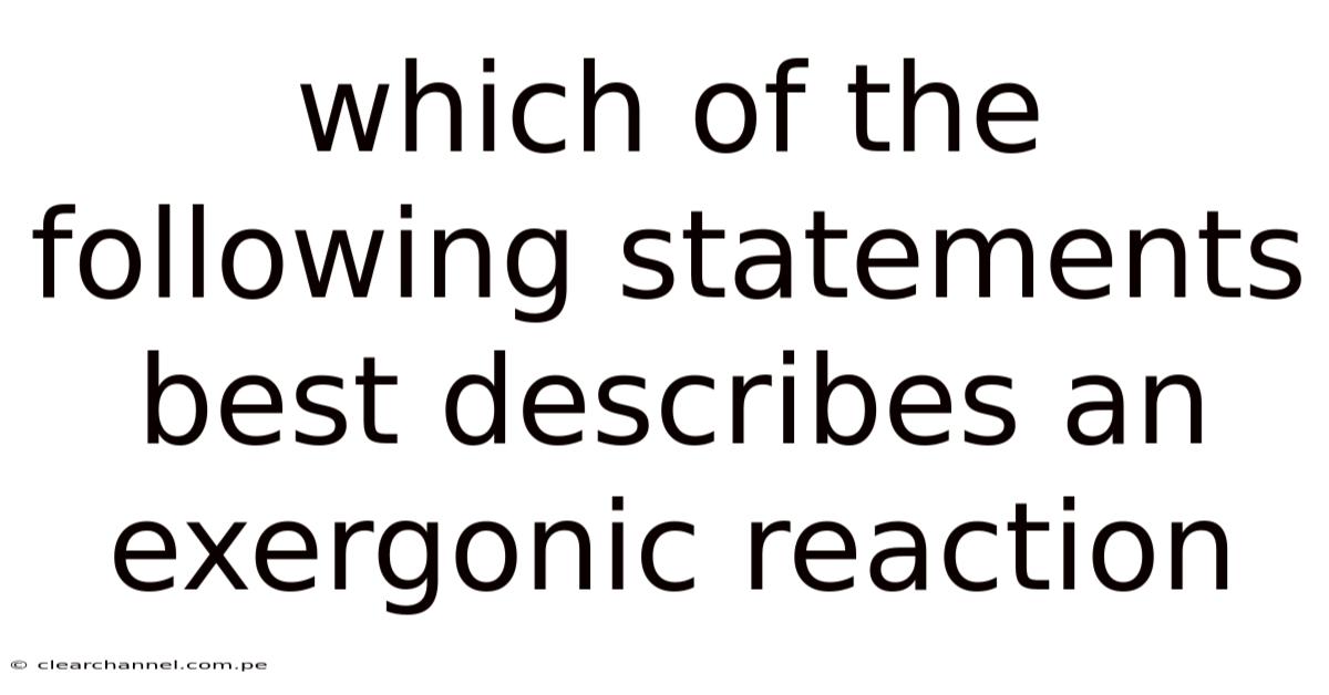 Pulling it all together, understanding which statements best describe an exergonic reaction is essential for anyone interested in science. This leads to these reactions are vital for energy transfer, biological processes, and environmental interactions. Day to day, by exploring their definitions, examples, and applications, we can better appreciate the role they play in our daily lives. On top of that, whether you are a student, a teacher, or simply a curious learner, mastering this concept will enhance your knowledge and inspire further exploration. Embrace the power of exergonic reactions, and let them guide you through the fascinating world of chemistry Nothing fancy..