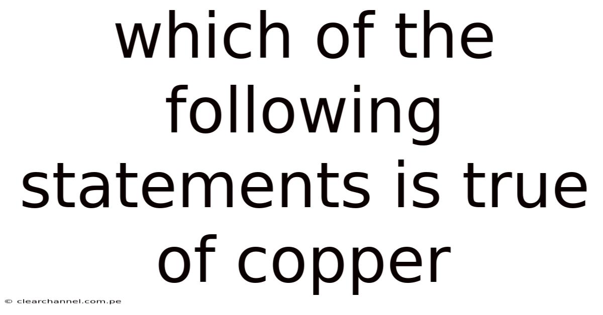 Copper is one of the most versatile and important metals in human history, playing a crucial role in countless applications across various industries. This remarkable element, with its distinctive reddish-brown color and exceptional properties, has been utilized by civilizations for thousands of years. Still, from ancient tools to modern electrical systems, copper continues to be an indispensable material in our technological advancement. Understanding the fundamental characteristics of copper helps us appreciate its significance and recognize why certain statements about this element are accurate while others are misconceptions Took long enough..