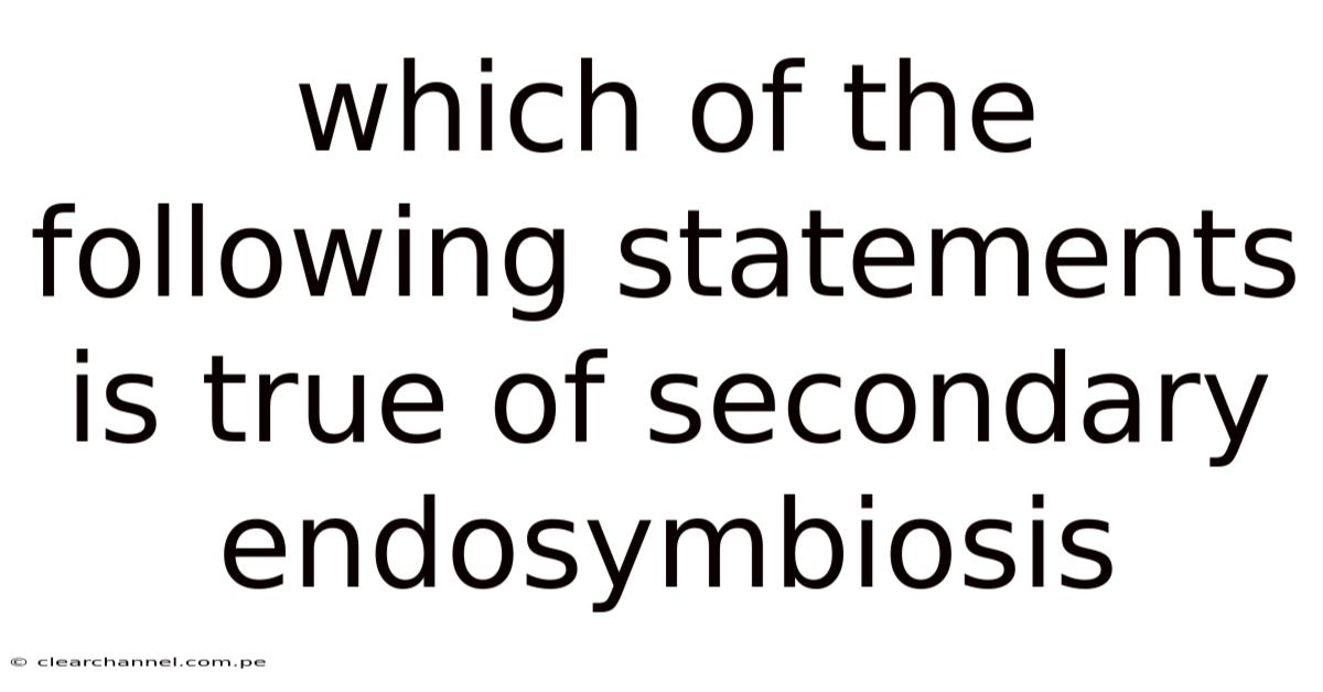 Identifying which of the following statements is true of secondary endosymbiosis ultimately requires recognizing its defining biological signatures: multi-membrane plastids, eukaryotic origins, repeated evolutionary occurrences, and profound ecological impact. Still, by examining membrane architecture, genomic footprints, and phylogenetic patterns, scientists have reconstructed one of evolution’s most successful experiments in cooperation. This remarkable process transformed ancient predatory interactions into permanent cellular partnerships that continue to sustain global ecosystems. Understanding secondary endosymbiosis not only clarifies the origins of complex life but also highlights how integration, rather than isolation, drives biological innovation. Whether studying marine ecology, cellular genetics, or evolutionary theory, grasping this process provides essential insight into the interconnected history of life on Earth That alone is useful..